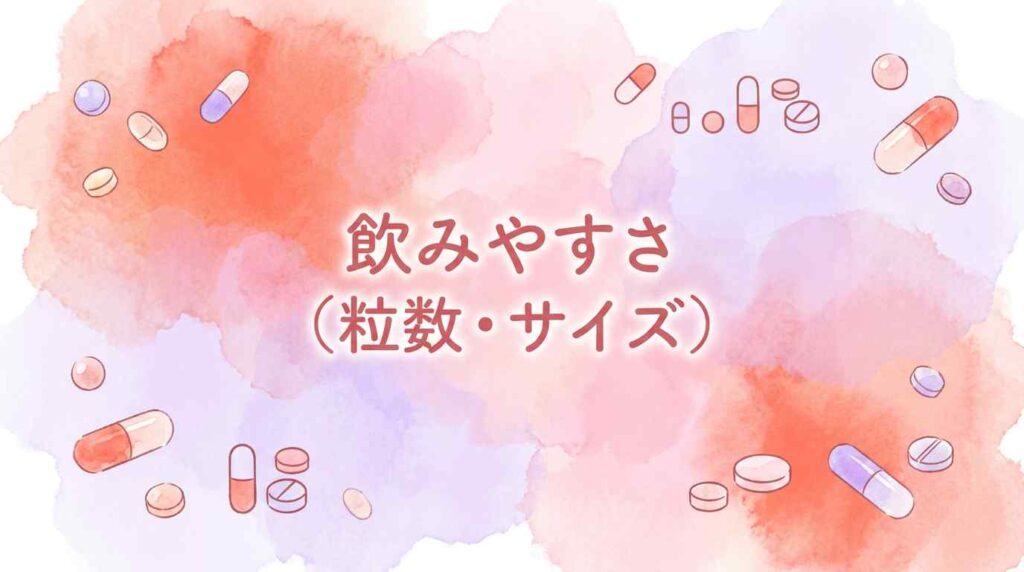 小粒タイプのベルタのほうがつわり時期に飲みやすいという声が多いです。エレビットは粒がやや大きめで苦手な人もいます。飲みやすさの詳細は比較⑨ 飲みやすさを参照してください。