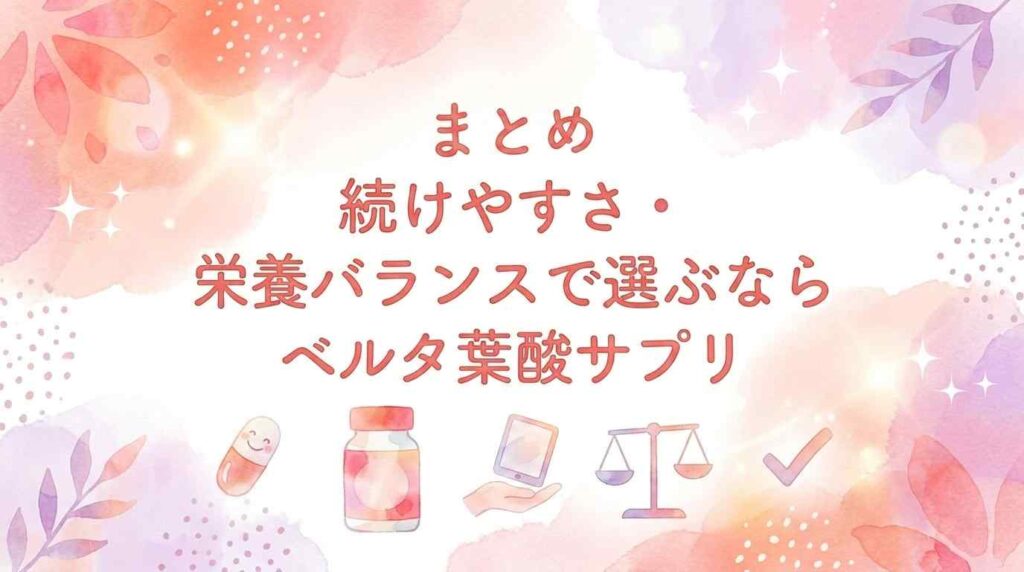 まとめ:続けやすさ・栄養バランスで選ぶならベルタ葉酸サプリ