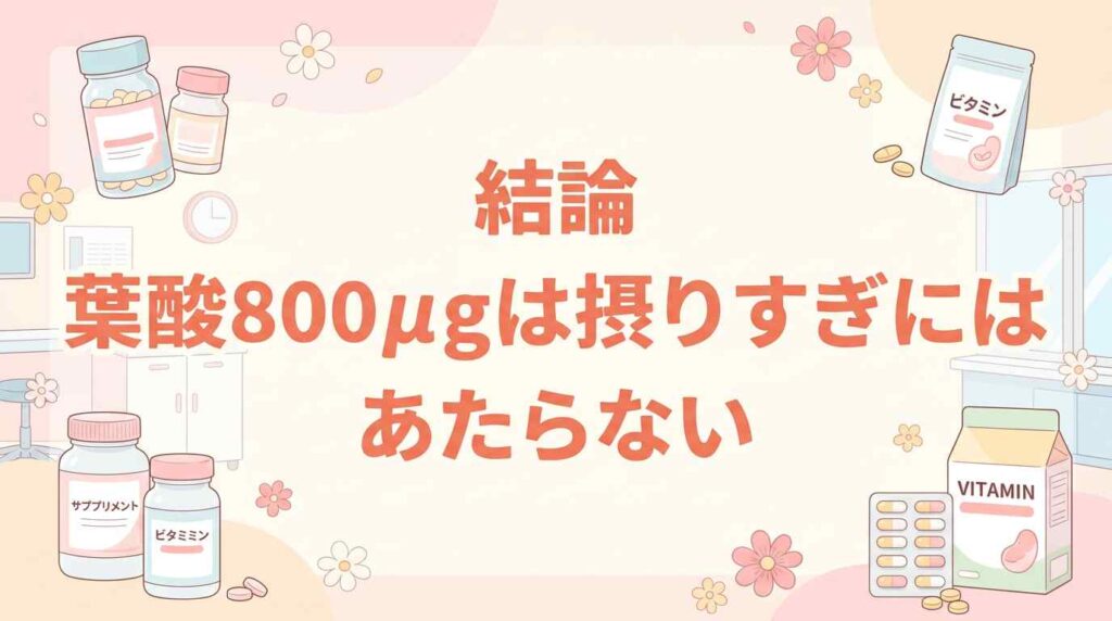 結論:葉酸800μgは「摂りすぎ」にはあたらない
