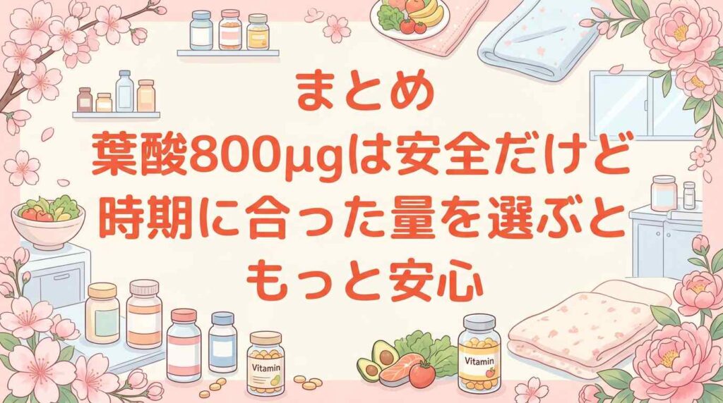 まとめ:葉酸800μgは安全だけど、時期に合った量を選ぶともっと安心
