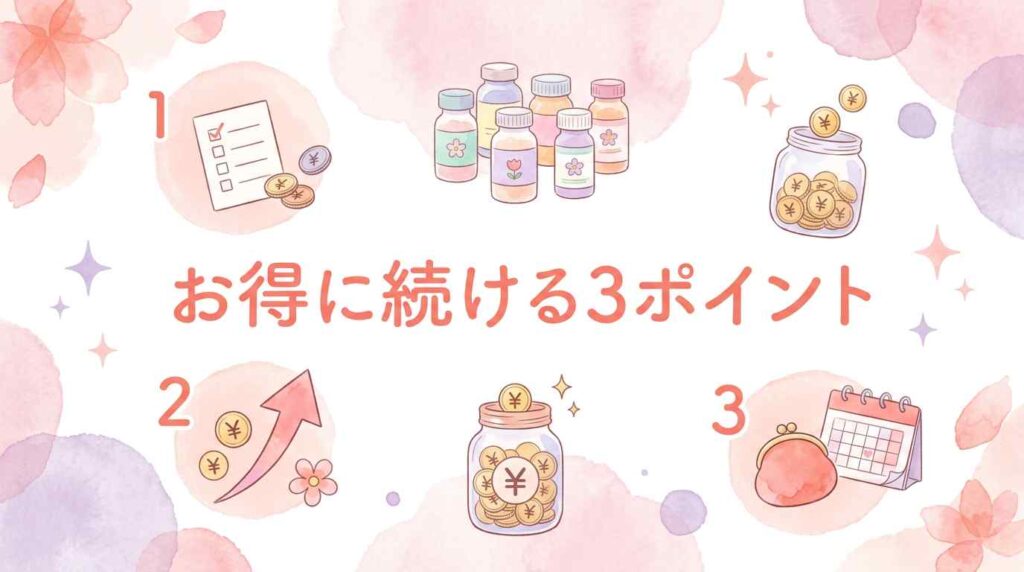 ピルを長く続けるために、費用で損しないためのポイントを3つ紹介します。