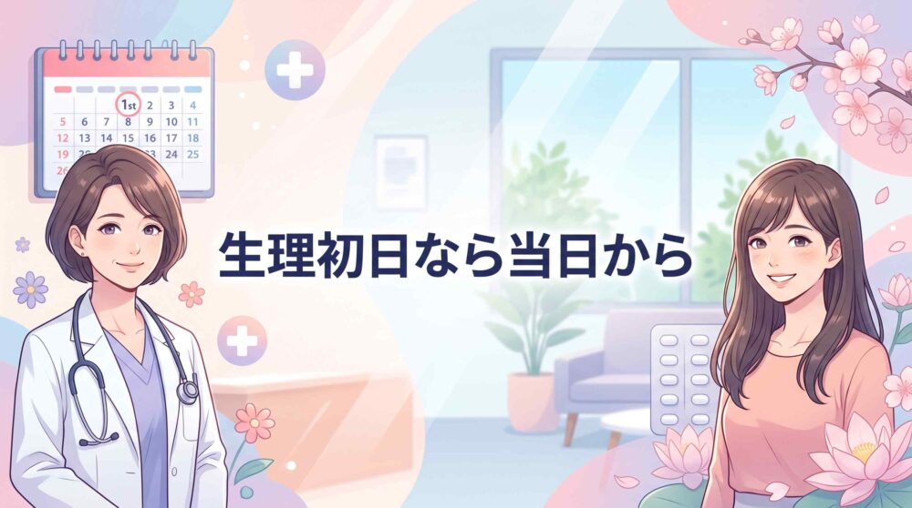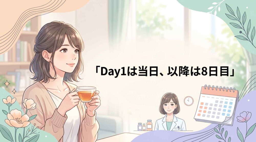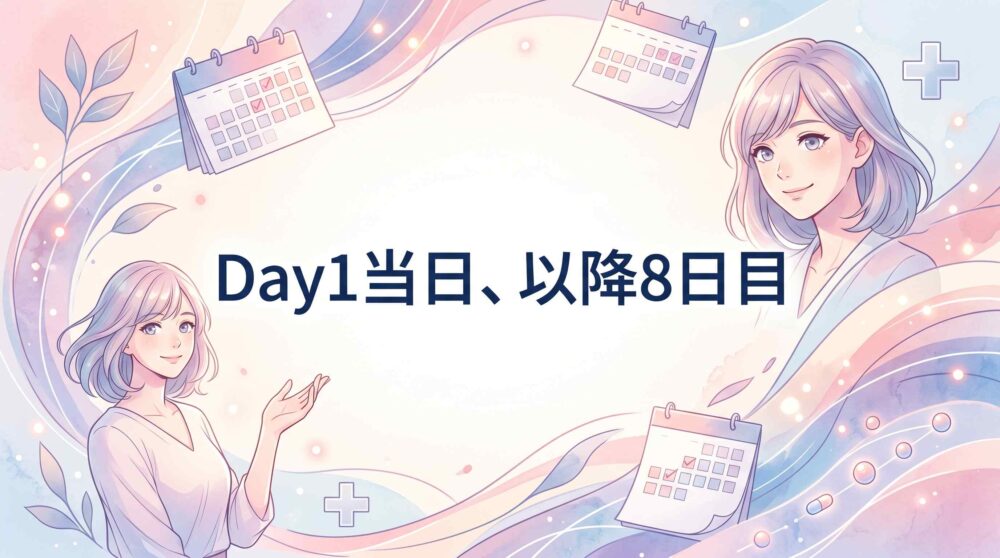 Day1スタートを狙う場合、次の生理予定日から逆算して処方を受けておくとスケジュールが組みやすくなります。