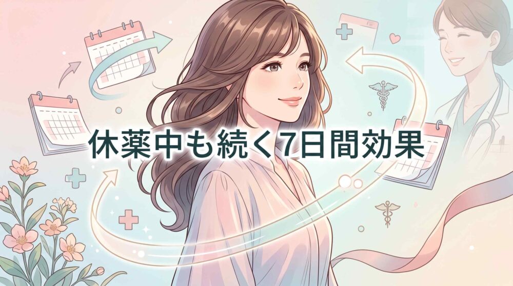 休薬期間中に生理が来るのは、子宮内膜がホルモン低下に反応して剥がれるためで、排卵自体は起きていない点がポイントです。