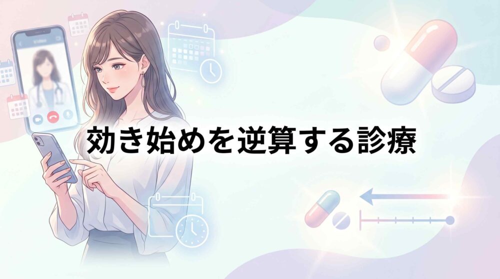 逆算の目安。生理予定日の2日前までにビデオ診察と決済を済ませておくと余裕を持てます。