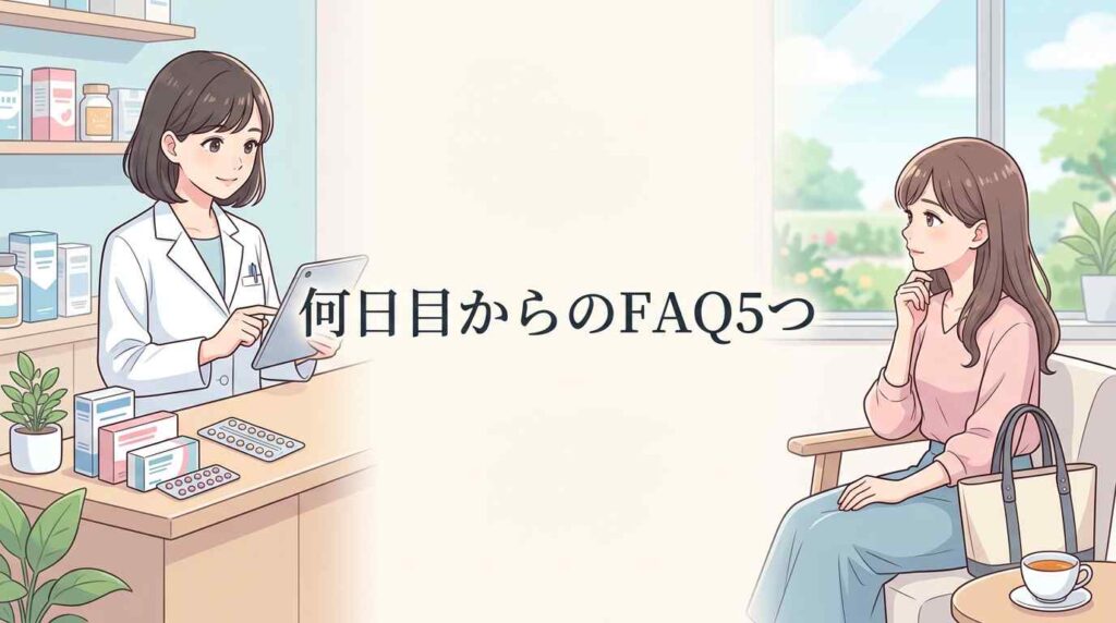 「いつから安心できるか」が明確になると、服用も続けやすくなります。次の生理初日に合わせて準備を進めて、ご自身のペースで避妊をコントロールしていきましょうね。