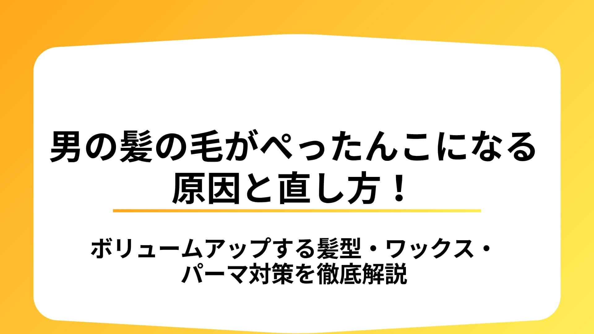 男の髪の毛がぺったんこになる原因は、髪質・頭皮環境・薄毛の3つに大別されます。