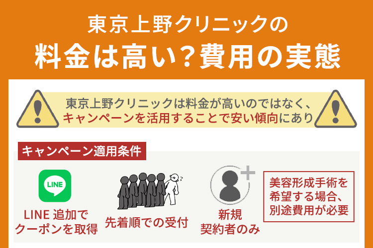 東京上野クリニックは料金が高いわけではなく、むしろキャンペーンを活用することで安い傾向にあります。